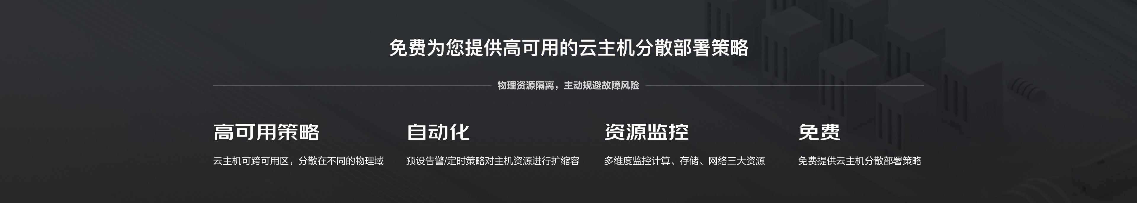 关于鹿屿网络云服务器当您选择在高可用组内部署云主机时,您的云主机将被分散在多个可用区的不同物理资源上,相互隔离。一旦发生底层硬件/软件故障时,影响会控制在该资源上的云主机内,其他云主机正常可用,保障您的业务稳定运行。